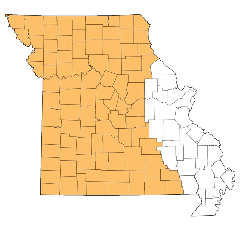 - Live in one of the 87 Missouri counties indicated on the map to the left.